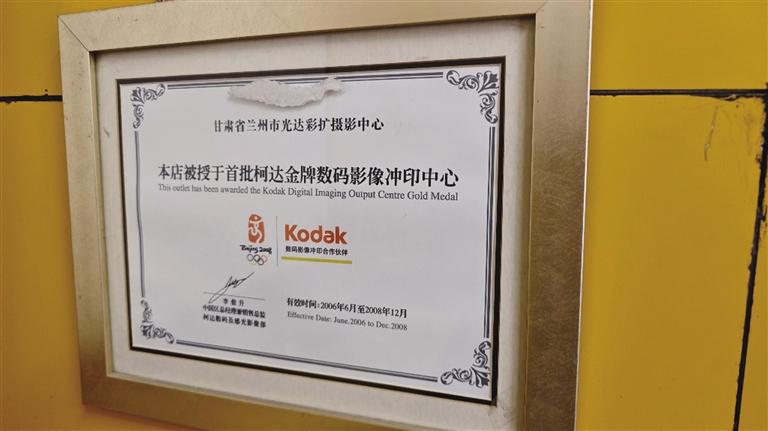 每天清晨,杨焕光都会打开店门,整理柜台,擦拭照相设备,墙面上挂满了大大小小的照片和奖牌,记录下小店经历过的每一个“大事件”,宛如一部“微型影像史”。这家看似寻常的照相馆,曾经通过柯达“世界级品质”认证,获得“西北首家五星级柯达KEX连锁店”的殊荣,时任伊士曼柯达公司全球总裁兼首席执行官邓凯达先生曾专程飞抵兰州,亲自为其揭牌。
