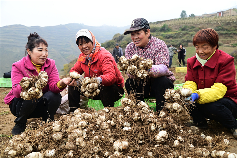 10月22日,兰州市七里河区黄峪镇角坪村的百合地里,村民们忙着挖百合、清泥土、装筐,田间地头呈现出一派繁忙的丰收景象。今年,该区百合种植面积达5.54万亩,预计产量3.3万吨,产值将突破10亿元。新甘肃·甘肃经济日报记者 瞿娟 摄