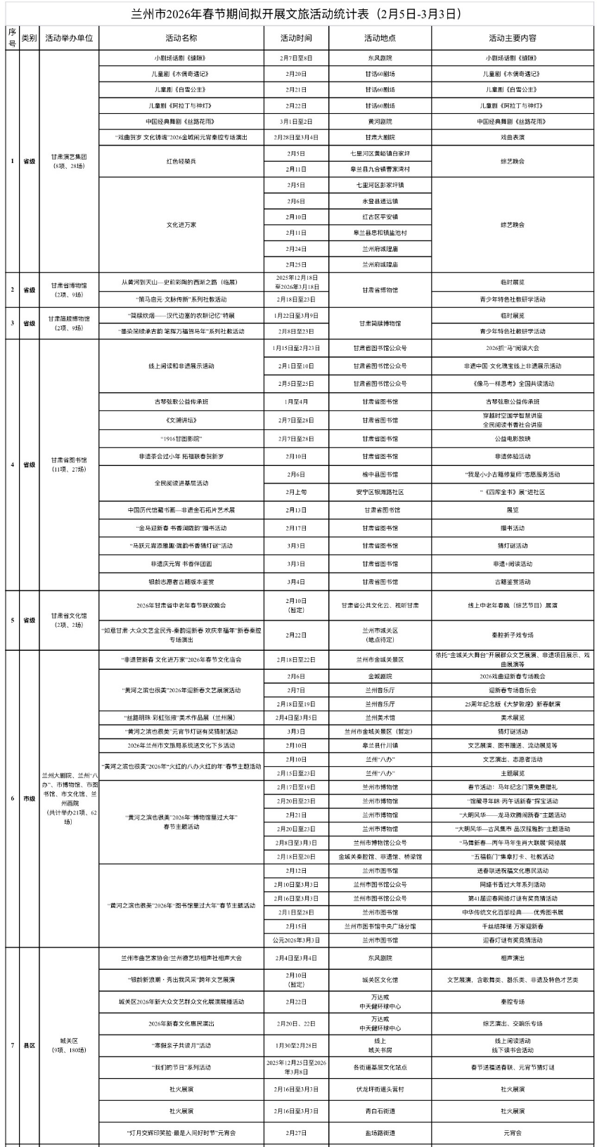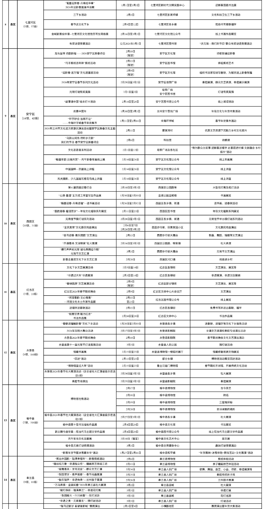 2026年春节期间兰州市文旅活动