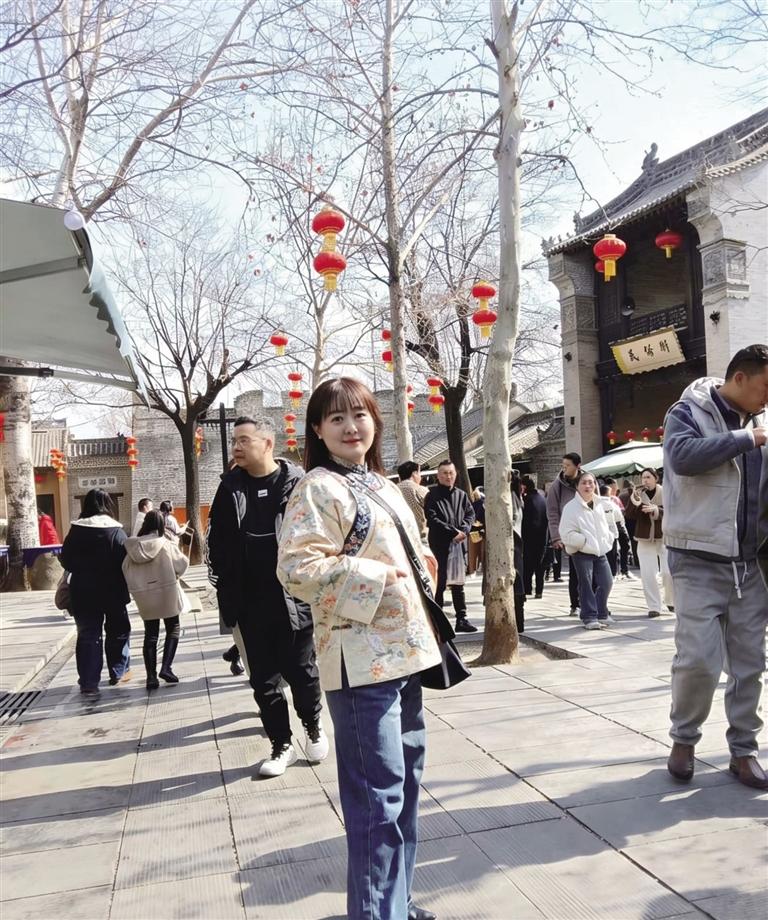 家住城关区西关十字的29岁白领张萌,选择了红色新中式盘扣外套搭配黑色阔腿裤,简约大气又不失年味。她表示,随着国潮文化兴起,自己越来越偏爱带有传统元素的设计。“我们的传统文化里,藏着最动人、最耐看的东方美学。春节是中华民族最隆重的节日,穿上传统服饰,是对祖先智慧的致敬,也是发自内心的文化自信。这种美,是刻在骨子里的。”